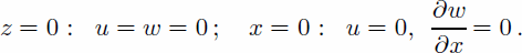 It is supposed that the ice temperature is significantly below the melting point at the bed so that there is no melt and no basal sliding at the interface, and at the ice divide we have the symmetry conditions. Hence, the boundary conditions at z = 0 and x = 0 are expressed, respectively, by