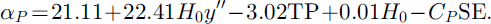 Spearman rank correlations between the predictor variables and α are shown in Table 2, and significant variables (p < 0.05) are highlighted. Seven of the 14 variables are significant at the 5% level and these were used to build the regression model. Two other predictor variables (θ andTP) showed correlations of borderline significance with α (0.05 < p < 0.1) and were also used in the regression. Backward-elimination multiple regression was used with these nine predictor variables to obtain the best fit of the predicted values of α to the observed values.
