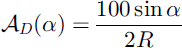 Fig. 1. For a sphere of radius R;AD(α) = (100 sin α)/2R%. This distribution has a maximal value for π/2 (equatorial line).