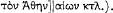 34 The awkwardness seems to centre on the word ποεῖν, which cannot be made intelligible in its context. If it is taken as an error, there are still difficulties as to how the clause runs. It could be that the clause runs on to this point and that Pittakys's conceals a (second) reference to someone speaking. Otherwise a new clause could have begun. It seems fairly profitless to speculate on the point, though it would seem to be the case that lines 3 and (most of) 4 are taken up with some kind of motivation clause(s).