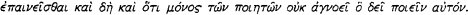 3 Cf. Owen, E.T., The Story of the Iliad (Toronto 1946Google Scholar; repr. Bristol & Naucouda 1989) 5: ‘… Homer merely sets the scene, puts his persons into it, and leaves it to them, being what they are, to carry the action forward; and we get to know them from what they do and say.’ Homer’s ‘art of poetry’ is praised by Aristotle (Poetics 1460a) in association with the role that the poet assigns to his characters, ‘as he alone among all epic poets is well aware of the part he should have in his poem: that is, the poet himself should say very little for this is not the way that a poet is μιμητής … Homer’s narrative [or his coming forward as a person] is reduced to the minimum and immediately introduces a man or a woman or some other persona and none of them characterless but each one with character’: ![]()