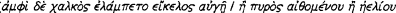 22 This passage is full of an idea of brightness; cf. Il. 19.356 ff., and Edwards, IC 5.276. At Iliad 22.134 ff. Achilles' appearance like Ares, wearing his armour, gives the impression of blazing fire or rising sun: thus the bronze armour which covered him was flashing (![]()