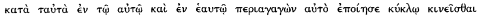 At Laws 897d3-898b3, axial rotation is equated with the motion of reason, which is described as most like movement in one place around a centre: both motions move ‘in the same way and manner, and in the same place and about the same place, and in relation to the same, and according to one law and one order’ (