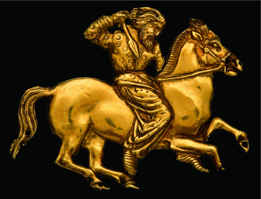 Gold plaque depicting a Scythian rider with a spear in his right hand; second half of the fourth century BC; Kul’ Oba (© The State Hermitage Museum, St Petersburg, 2017; photoograph: V Terebenin).