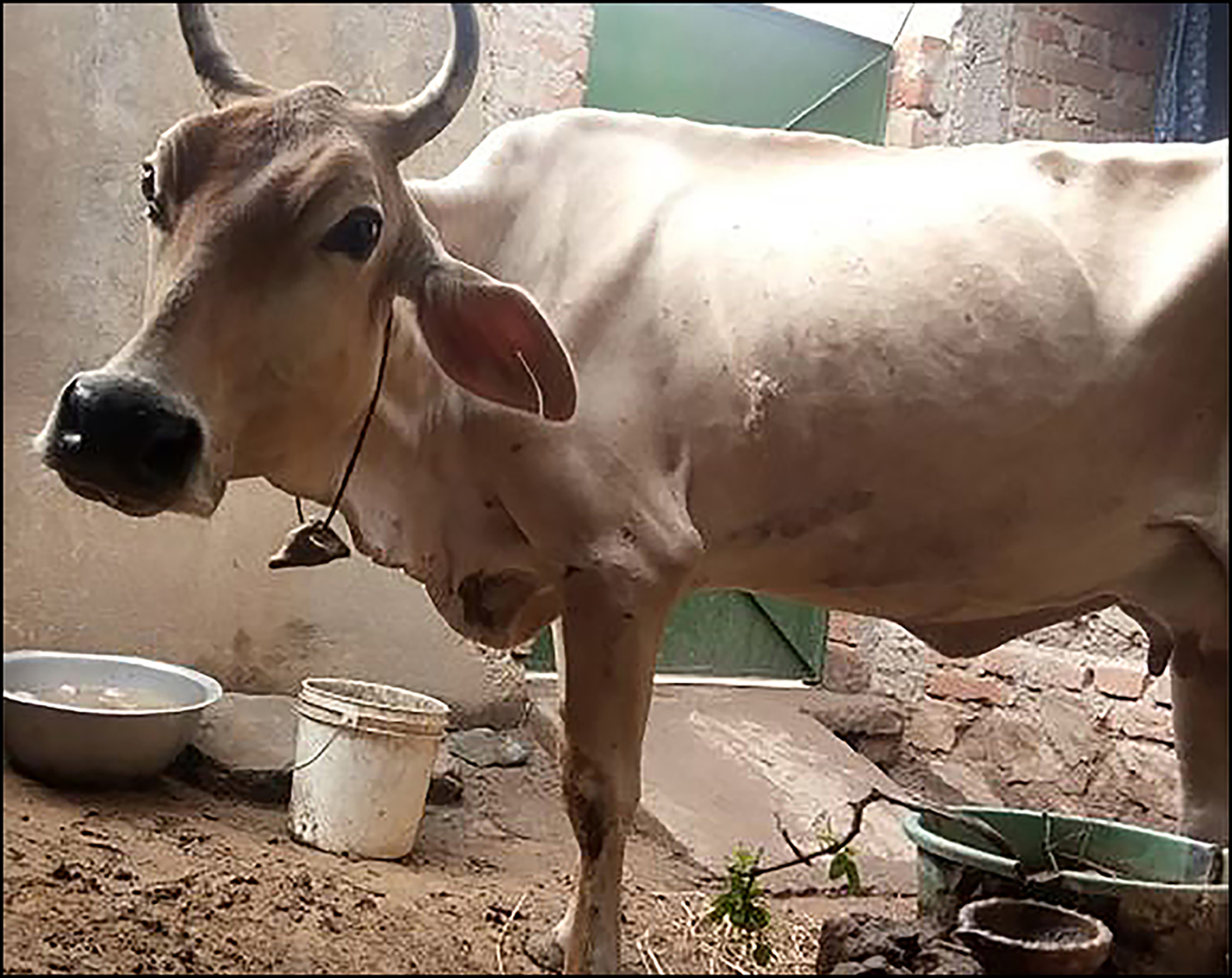 Figure 2. An example of ringstone reuse; the ringstone is tied around the neck of a sick cow (photograph by S. Bhattacharya).