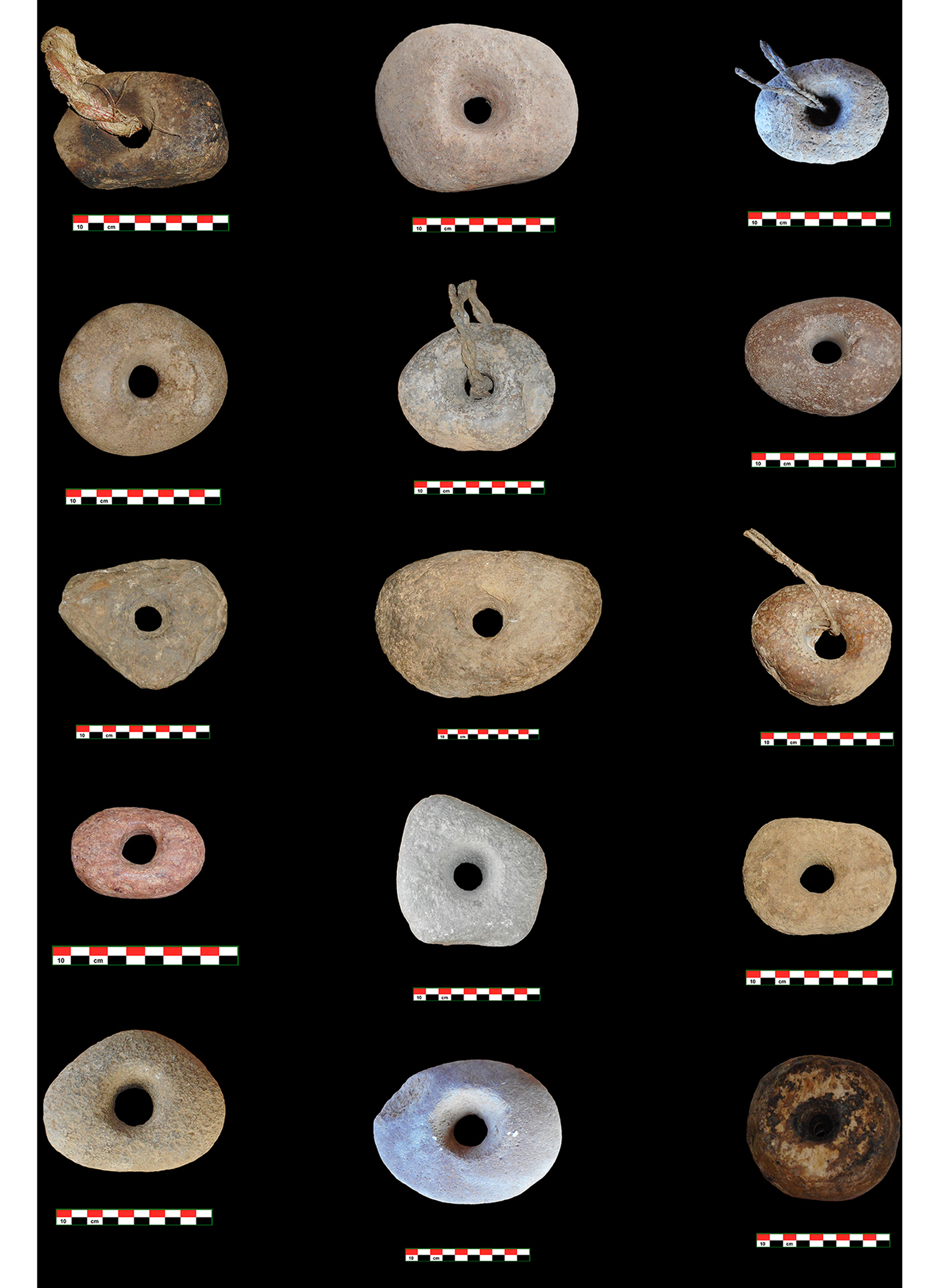 Figure 4. Broken ringstones from the study area (scales in centimetres; photographs by S. Bhattacharya).