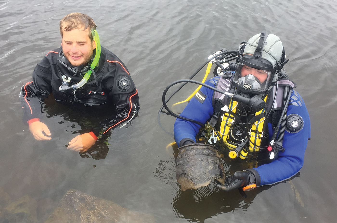 Figure 2. Recovering an Unstan vessel from Loch Arnish in 2012 (photograph by C. Murray).