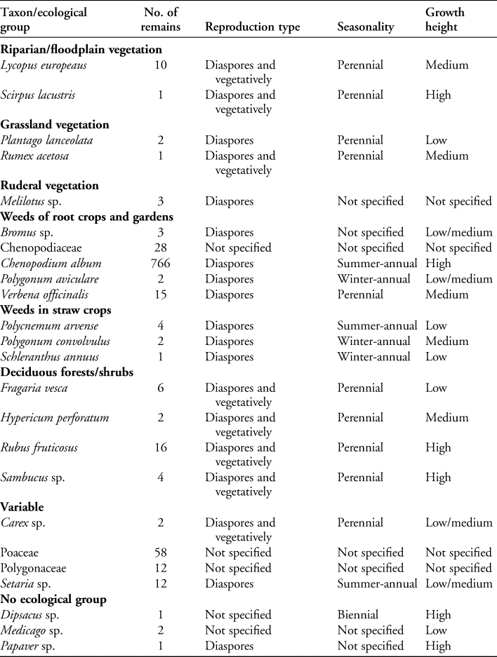 Table 1. Ecological characteristics of potential weed species and number of remains at Vrbjanska Čuka (data after Ellenberg (Reference Ellenberg1992) and Kreuz & Schäfer (Reference Kreuz and Schäfer2011)).