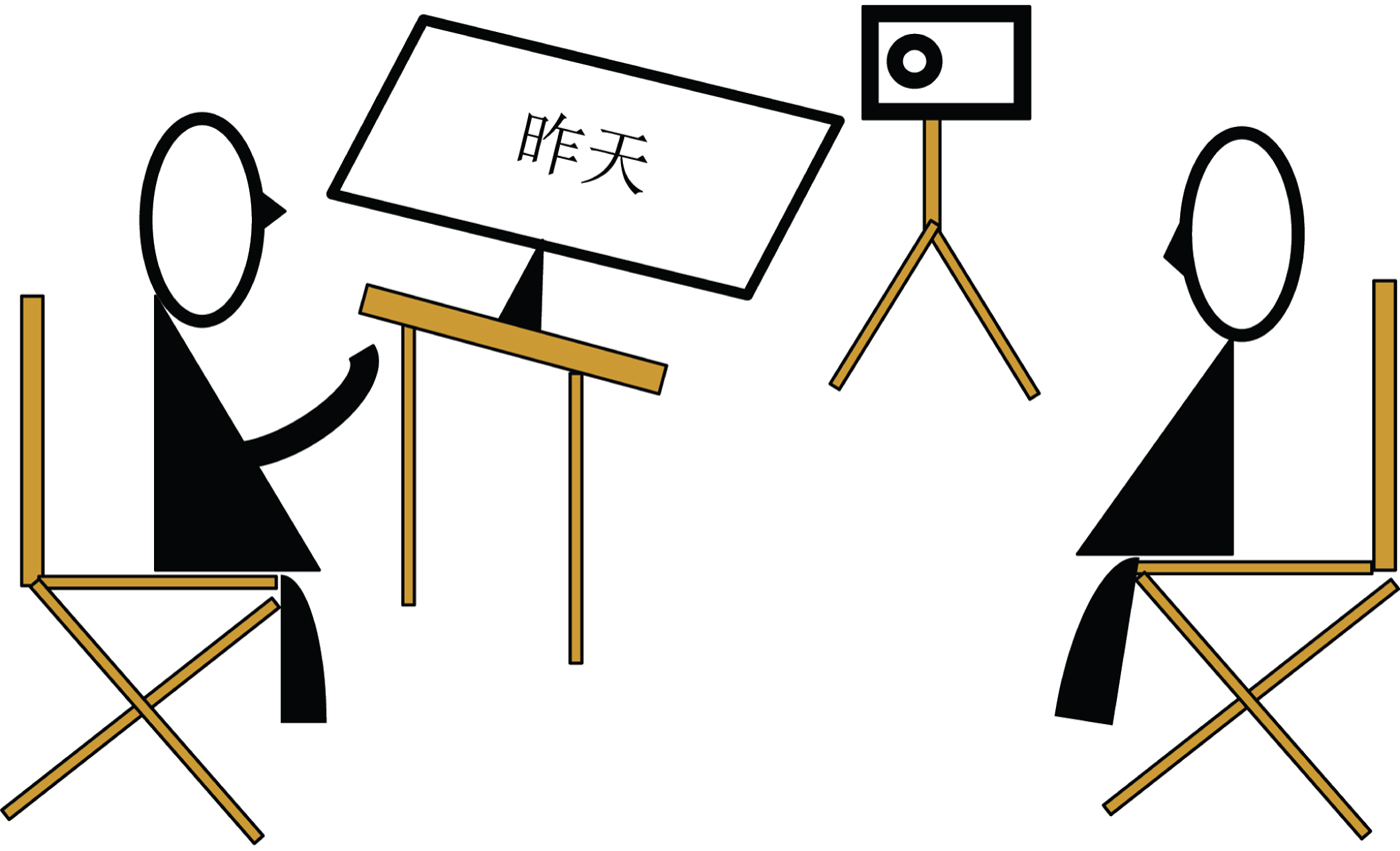 It has been shown that Mandarin speakers make gestures on different axes in space to represent time. First, similar to English speakers, Chinese people most often produce lateral temporal gestures, with the past on the left and the future on the right side. However, different from most Westerners, Chinese can exploit a vertical axis as well to gesture about time, as they tend to spontaneously point upwards for the time conception of “last week” and downwards for “next week” (Gu et al., Reference Gu, Mol, Hoetjes and Swerts2017).