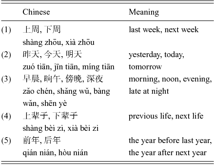 Table 1. Examples of future-in-front/past-at-back and past-in-front/future-at-back mappings in Mandarin.