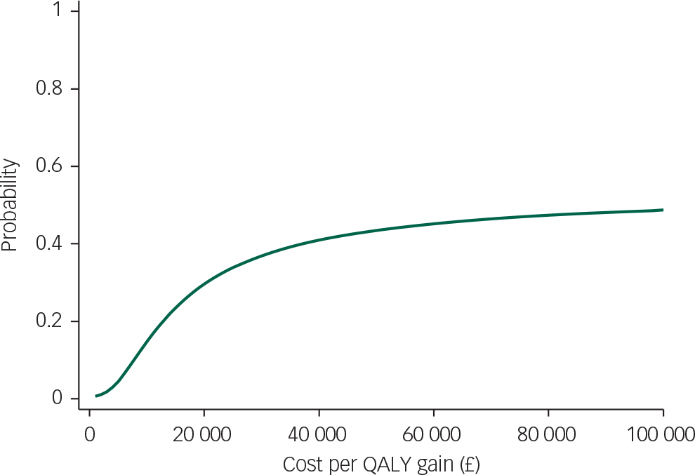 | Probability that intervention cost-effective at CE threshold of £30 000: 0.40 | |||