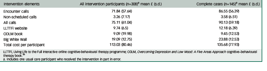 Table 1 Mean (s.d.) depression intervention cost (£) per participant for all participants and complete cases