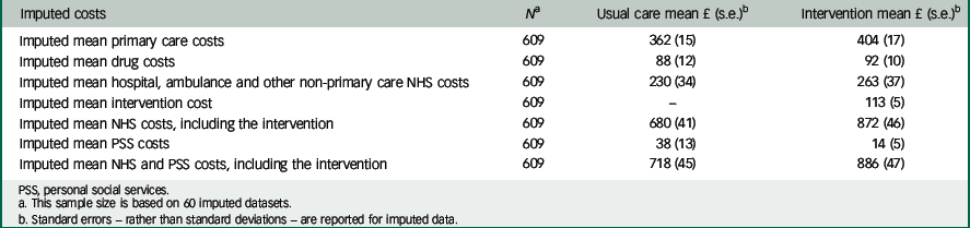 | Imputed mean NHS costs, including the intervention | 609 | 680 (41) | 872 (46) |