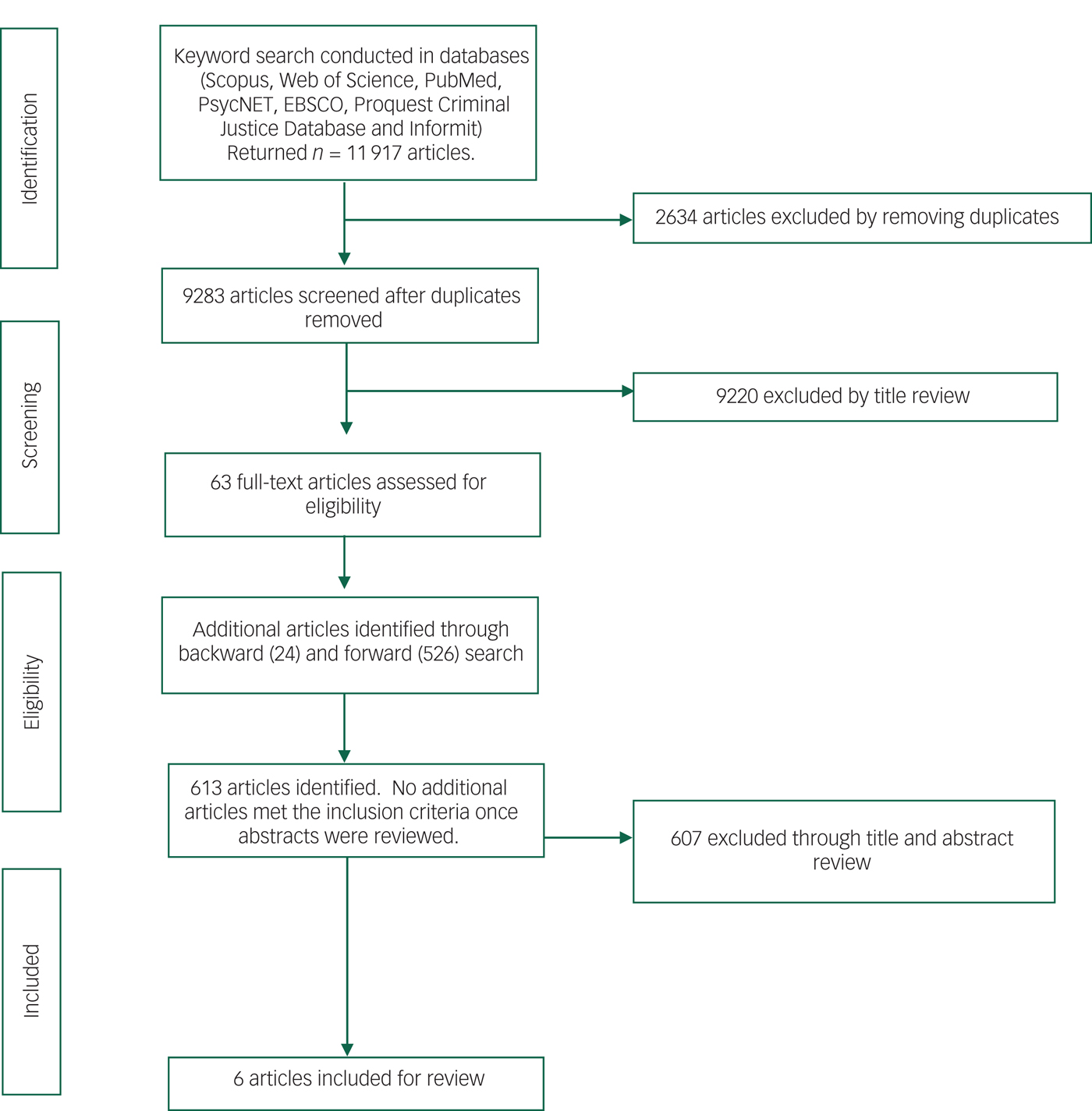 Existing reviews of mental health interventions for prisoners or community offenders typically focus on the general population rather than on Indigenous or First Nations people,Reference Abbott, Lloyd, Joshi, Malera-Bandjalan, Baldry and McEntyre55–Reference Sherman, Strang, Mayo-Wilson, Woods and Ariel62 and other reviews of interventions for vulnerable populations may include some Indigenous people or prisoners, but do not focus on Indigenous prisoners.Reference Bryant, Bonevski, Paul, McElduff and Attia63–Reference Wilson, Guillaumier, George, Denham and Bonevski66 Only one Indigenous-specific review on prisoners was identified, but that focused on prisoners' needs when transitioning back to the community, rather than on interventions for Indigenous prisoners more generally.Reference Abbott, Lloyd, Joshi, Malera-Bandjalan, Baldry and McEntyre55