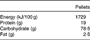 Rats in groups A, B and E continued to be fed the baseline pelleted diet. Rats in groups C and D were fed elemental diets diluted in water (2:1) for 12 d before the induction of colitis and during the measurement of TNBS activity thereafter. The composition of the elemental diets is given in Table 2. Overall, the energy, protein, carbohydrate and fat content was virtually the same. In terms of fat composition, one elemental diet contained more LCT (65 %) and less MCT (35 %) and had a ratio of n-6:n-3 PUFA of 4:1, while another elemental diet was higher in MCT (83 %) than in LCT (17 %) and had a higher ratio of n-6:n-3 PUFA (46·5:1).