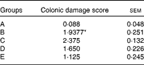 Table 3 Histological damage scores in healthy and colitic rats 4 d after the administration of trinitrobenzene sulphonic acid (TNBS) (Mean values with their standard errors)