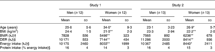 † BMR as calculated using the Schofield equations(Reference Schofield18).