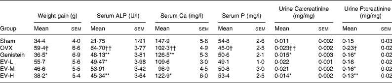 Table 1 Effects of Erythrina variegata L. (EV) on weight gain and levels of biochemical markers in serum and urine of ovariectomised rats