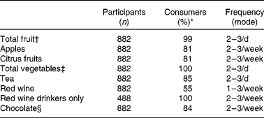 Table 2 Reported frequency of consumption of flavonoid-rich foods in study participants who consume the foodstuff listed in the questionnaire