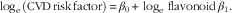 $$\log _{{\rm e}} \,({\rm CVD}\,{\rm risk}\,{\rm factor})\,{\equals}\, \beta _{0} {\plus}\log _{{\rm e}} \,{\rm flavonoid}\,\beta _{1} .$$