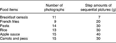 Table 2 Amounts of the food items for which the photographs are presented simultaneously