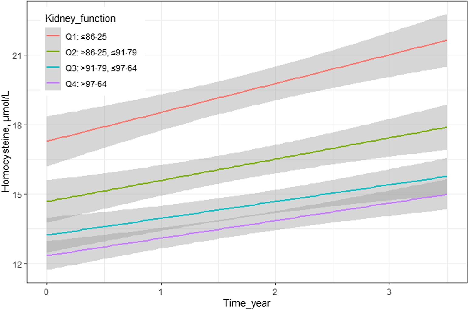 Table 3. Associations of kidney function at baseline with subsequent plasma Hcy in all participants