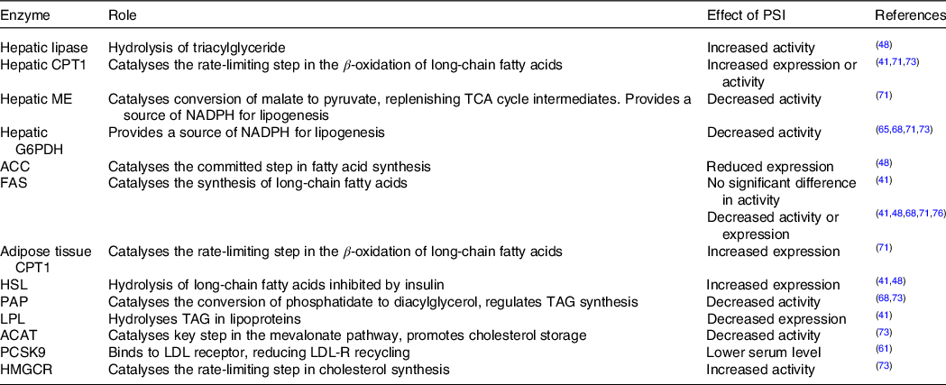 Table 3. The effects of in vivo PSI administration on the enzymes involved in lipid metabolism