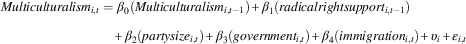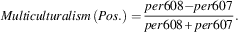 The higher a party scores on this measure, the more it represents restrictive policies toward citizenship acquisition and immigration in an election. A measure of the saliency of multiculturalism is calculated as follows: