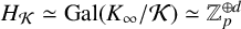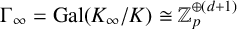 $\Gamma _\infty =\operatorname {Gal}(K_\infty /K)\cong \mathbb {Z}_p^{\oplus (d+1)}$