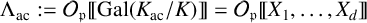$\operatorname {Gal}(K_{{\mathrm {ac}}}/K) \simeq \mathbb {Z}_p^{\oplus d}$