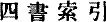 page 123 note 1 Harvard-Yenching Sinological Index Series: Yihjing, Shyjing, Tztioojuann, Analects, Mencius, Mohtzyy, Juangtzyy, Shyuntzyy. Morimoto Kakuzo Shisho sahuin (1933), Gokyo sakuin vol. in (1944). Tsay Tynggann Laojiee Lao 1922.