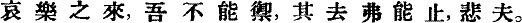 page 131 note 1 Similarly generally translated ‘ Alas ‘, means ‘ Is it not sad? ‘ In Juangtzyy, where the phrase occurs ten times, it seems to be more or less interchangeable with cf. Harvard-Yenching Concordance 61/22/82 Is it not sad that we cannot prevent the coming of sorrow and joy, nor stop them leaving? 4/2/19 Is it not sad that, harassed by the wear and tear of life, nothing can stop us going at a gallop towards extinction?