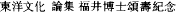 Tōyō bunka ronshū: Fukui Hakase shōju kinen