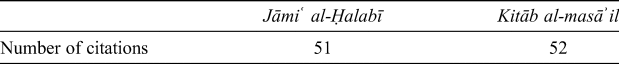 Table 1 Number of citations from Jāmiʿ al-Ḥalabī and Kitāb al-masāʾil in al-Īḍāḥ