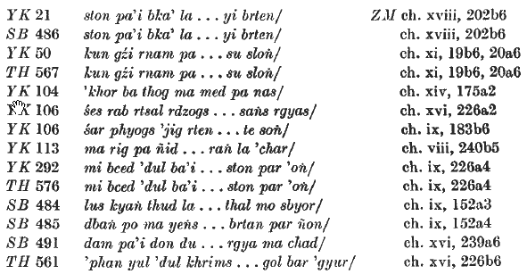 77 Ibid., 1. 27: rgyal po sten la dad ches daṅ ‘baṅs kyi chis myi byed/ ‘Quand le roi s’y adonna avec une grand passion, les affaires des sujets ne sont pas traitées’. Here it is a question of playing dmyig-maṅ ‘chess ‘ (Chos-kyi grags-pa, op. cit.; mig-maṅs) whereas in PC, 3883, it is shuanglu, see p. 570, n. 62. The author of ZM has changed the original sten to bstan-pa.