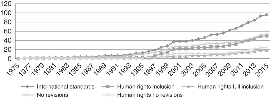 However, the revised standards in this first wave period were more expansive. Out of the 12 revisions that entered into force (1998–2009), half of them had references to human rights with three of them incorporating a holistic and comprehensive approach to recognition, including reference to the International Bill of Rights as well as specific rights protections. There are several possible explanations for this to which we will return later in the analysis.