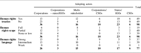 Table 4 Human rights commitments by adopting actor
