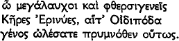 page 42 note 1 There is no need to refer v. 843 to apprehensions about the future: all the rest of the strophe and antistrophe refer to the brothers, and the news that there is lamentation for them in the city is (a) unsurprising, and (b) confirmed by vv. 900 ff. (άμφί πτόλιν = ‘in der Stadt umher’, to borrow K.–G.'s translation of Λ 706). There remains only the difficulty of vv. 902 f. At least two explanations are possible: (1) The meaning is posterity at large (cf. Homer's use of έπιγιγνόμενοι); (2) it is simply a momentary lapse, or an attempt to heighten the effect of irony, in eimer case a reminiscence to be explained on a Zielinski-type hypothesis. There is even a third explanation, Schneidewin's: ‘Das wahre ist, dass der chor mit bitterster ironie, wie in diesem päan des Hades oft, sagt: nun wird die habe — um welche sich der ganze fluch und Untergang der brüder drehte — bleiben für die nachkommen, nämlich die nicht vorhandenen.’ This explanation, absurd though it may seem at first sight, would not be discordant with what, for want of a better expression, we may call the ‘grim humour’ which Aeschylus permits himself from time to time.
