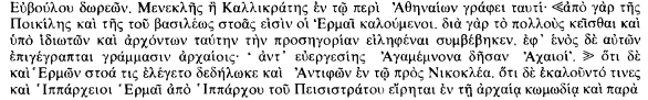 . The other relevant lexical entries are Souda s. v. ‘Ερμαῖ (a condensed version of Harpokration's entry), and Hesykhios s.v.