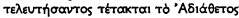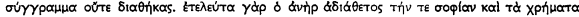 . Sch., Il. 22. 487. 2Google Scholar. having made no will, intestate, Plu., Cat. Ma. 9Google Scholar, D. Chr. 54.4, P. Oxy. 105.6 (ii A.D.), al. b. not disposed of by will, P. Grenf. i 17 (ii B.C.)Google Scholar, Sammelb. 4638. 5'. Mr Christodoulou has kindly pointed out to me that in the passage quoted from the Homeric scholia the standard texts have not