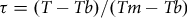 $$\tau = \left( {T - Tb} \right)/\left( {Tm - Tb} \right)$$