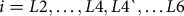 $$i = L2, \ldots ,L4,L4`, \ldots L6$$