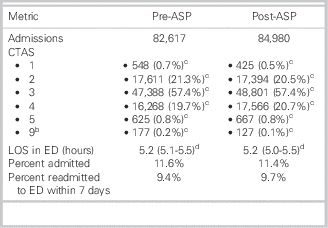 Table 1 Emergency department (ED) patient volume and metrics from before and after introduction of the antimicrobial stewardship program (ASP)Footnote a