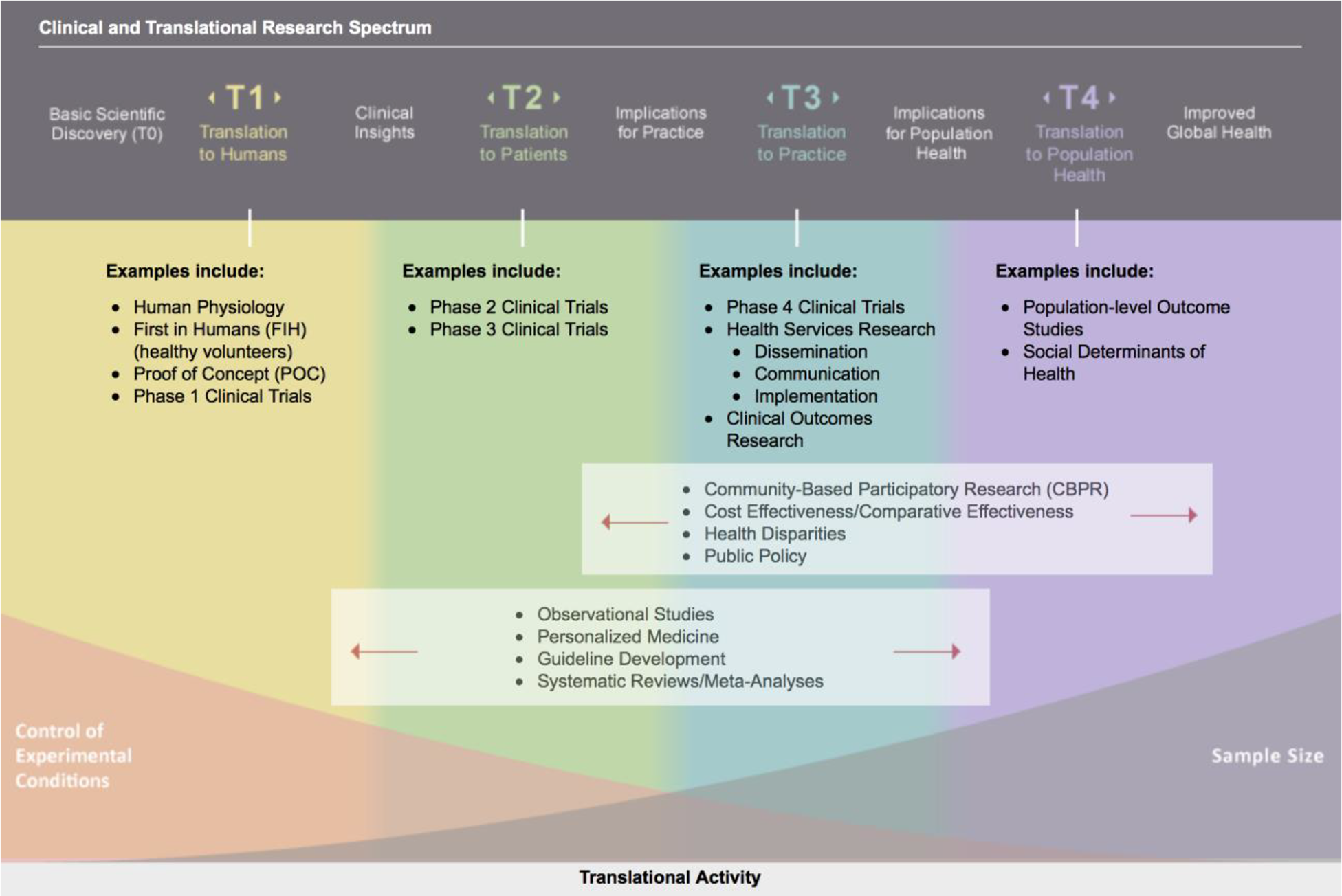 Figure 2. Overview of the Harvard Clinical and Translational Science Center’s five translational phases; adapted framework for the testing of a health intervention prior to its release to the general public.
