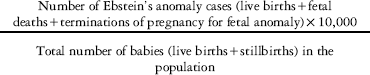 Total prevalence of Ebstein’s anomaly cases per 10,000 births was calculated as follows: