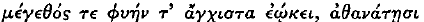 1 The normal meaning of before Pindar is ‘height’, ‘build’; resembles Homeric expressions like Occasionally the word seems to have a more general meaning in connexion with female beauty, ‘form’: Hes. Th. 259 similarly 355; Ale. 130. 32 But if Timasimbrota is compared to a man, only the more usual meaning comes into question.