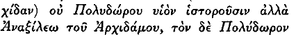 1 It is remotely possible that she was not named in the text, but known to the commentator from some other source as a daughter of Leotychidas. On this hypothesis, the text would have referred to ‘the daughter of Leotychidas’, and the commentator would be saying, ‘it is not clear whether the daughter referred to is Timasimbrota’. But this would be an odd comment, oddly expressed; and the fully Doric form in which the name appears (contrast ) suggests mat it is quoted directly from the text, not taken from history books.