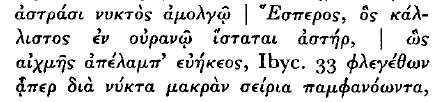 3 There are of course fainter stars and constellations; but it is uncertain to what extent they had been named by Alcman's time, and even when they had they were too obscure for a lyric poet and his public.