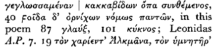 3 That belongs to this note and not to the following lemma, as or the like, is shown by the position of the coronis and diple below the line, indicating that die new poem began in the middle of the line.