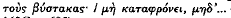 1 Although Men. Epit. 56 Korte may offer a grammatical parallel (cf. W. J. Verdenius, Mnemosyne IV 27 [1974], 21), the sense ‘don't be haughty’ is at odds with the typical Spartan aloofness (e.g. Ar. Pax 623; Av. 1012–14).